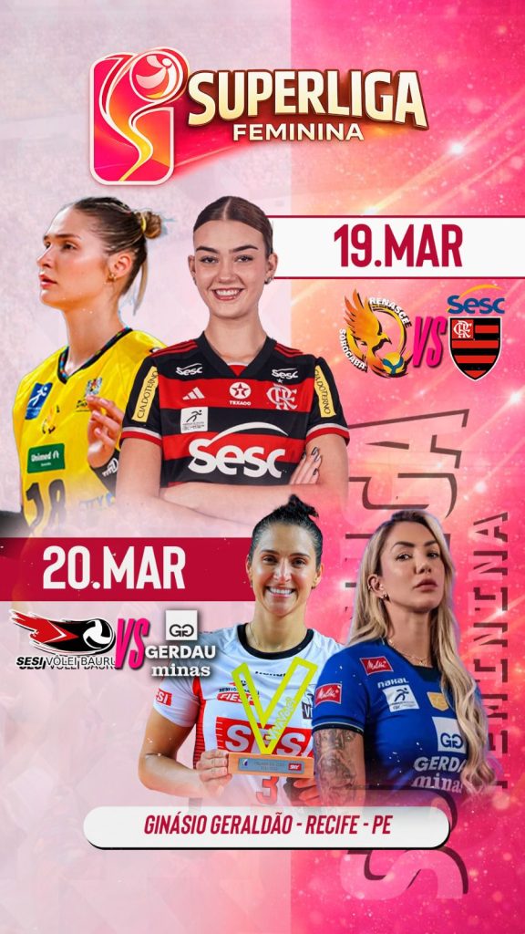 No dia seguinte, quinta-feira (20 de março), às 19h30, será a vez de Sesi Bauru e Minas entrarem em quadra no Recife. O duelo reúne duas equipes que ocupam posições de destaque na parte de cima da tabela e promete ser um dos jogos mais disputados desta etapa da Superliga fora do eixo Sudeste.